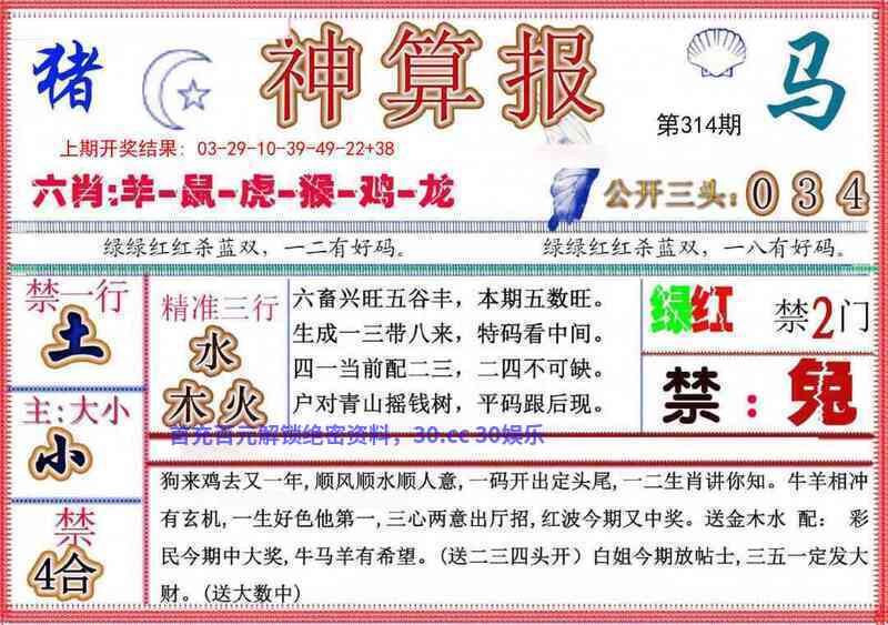 315期:电脑推算/正版解一肖输精光/玄机解一肖/六合皇五字